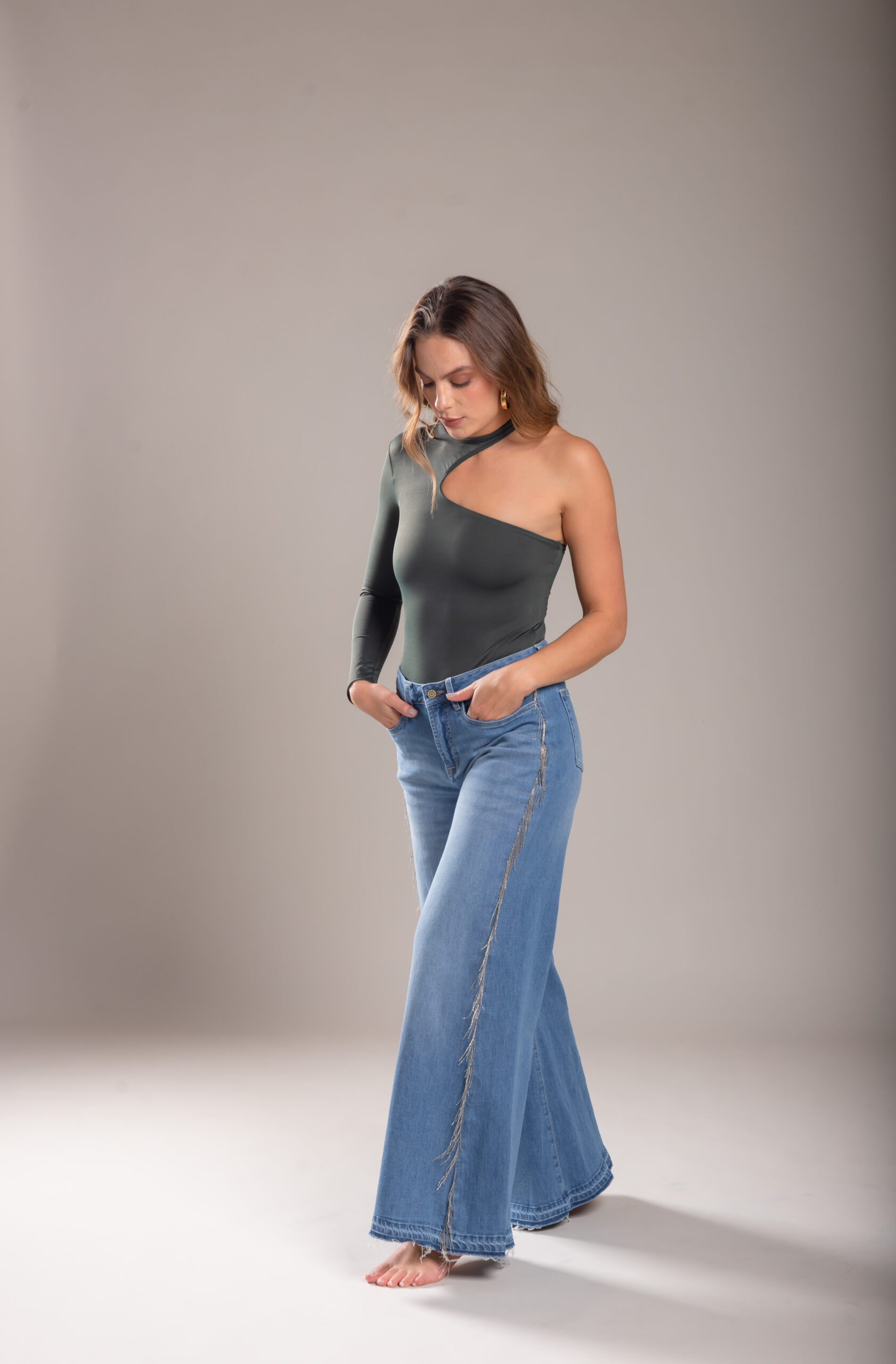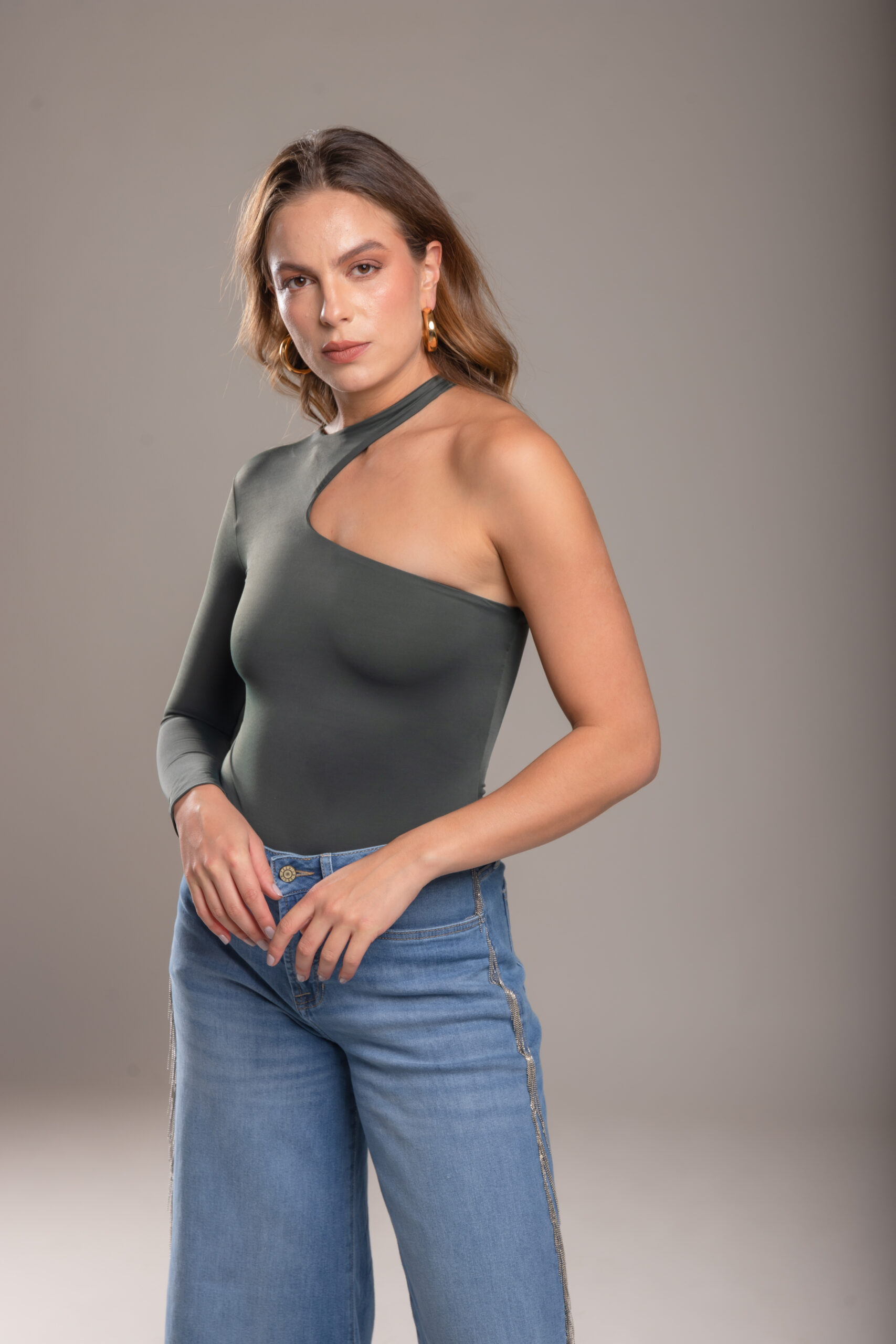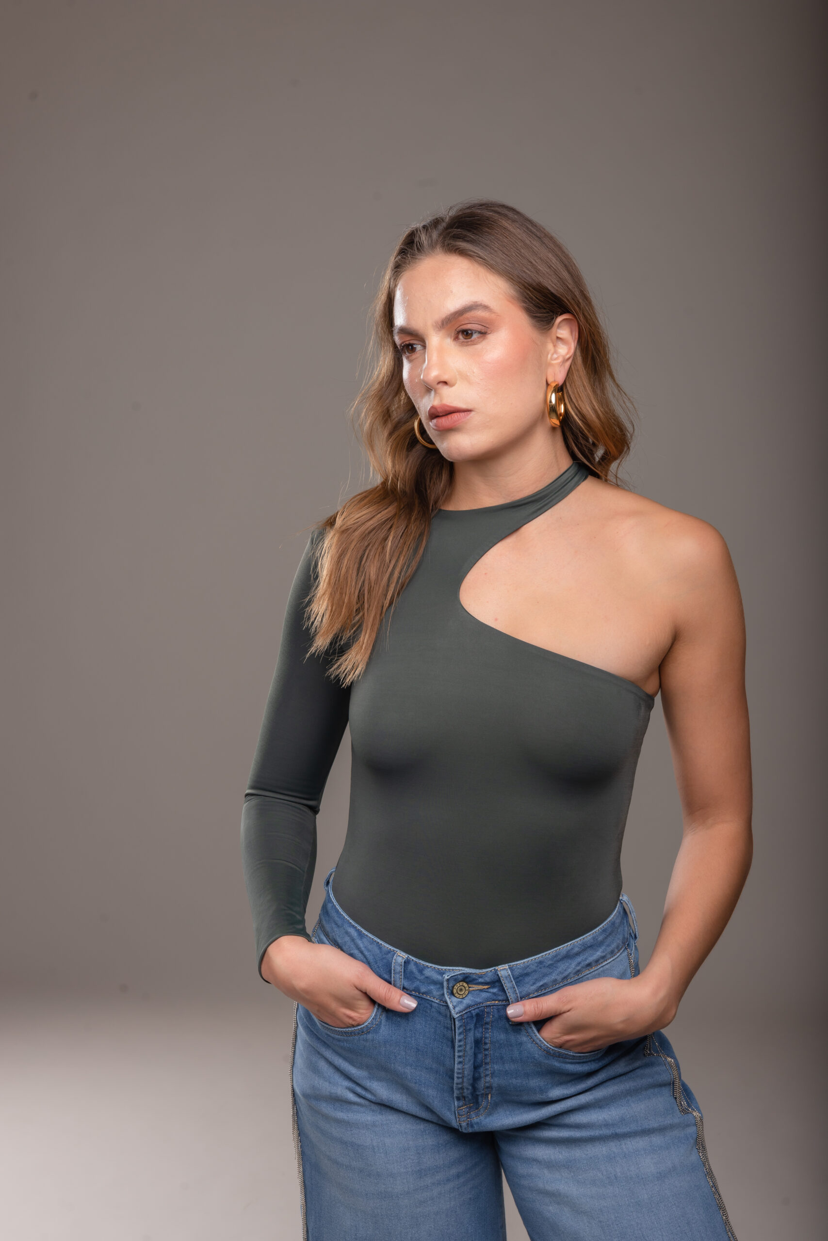 Diseño elegante con un hombro descubierto y una manga larga. Su ajuste perfecto y tejido elástico lo convierten en una prenda sofisticada y cómoda.